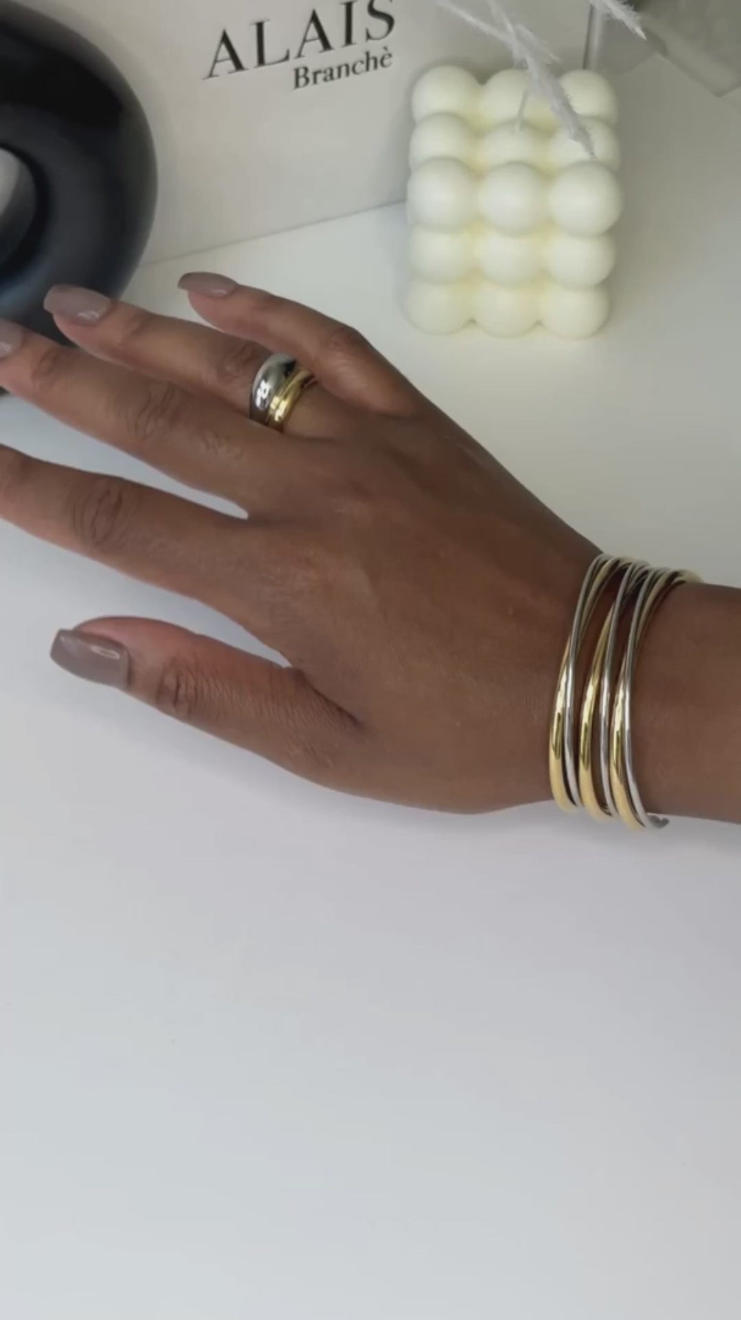 Gentle on Your Skin: Alais Branche' Jewely 18kt Gold Plated and Stainless Steel is hypoallergenic, ensuring it won’t turn your fingers green—a common issue with other gold jewelry. We prioritize your comfort and style.