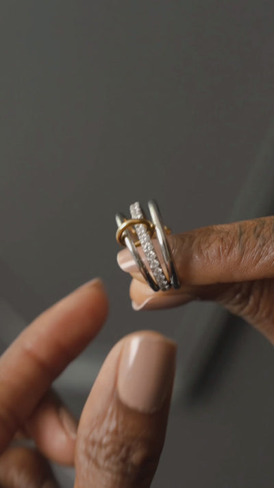 Elevate your style with the Kai 3 Layered Linked Ring, featuring a harmonious blend of mixed metals and a delicate pave layer. This sophisticated design offers a modern twist on classic elegance, making it a versatile accessory for any occasion. Its layered construction adds depth and texture, ensuring a refined yet contemporary look that complements both casual and formal ensembles.